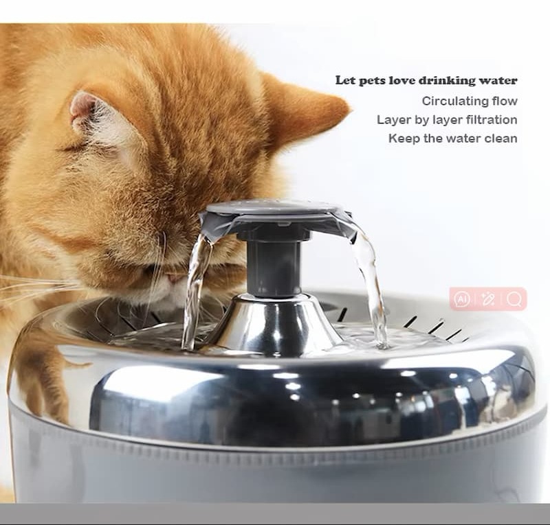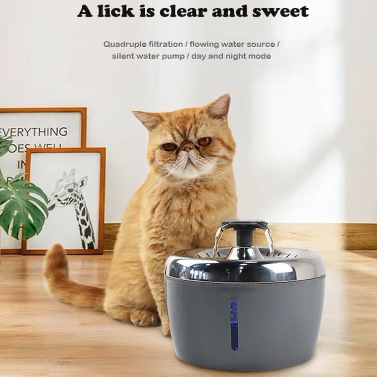 The Smart Pet Water Dispenser Automatic Drinking is Stainless Steel Apple Water Dispenser / Quadruple Filtration / Flowing Water Source / Silent Water Pump / Day And Night Mode / Let Your Pets Love Drinking Water