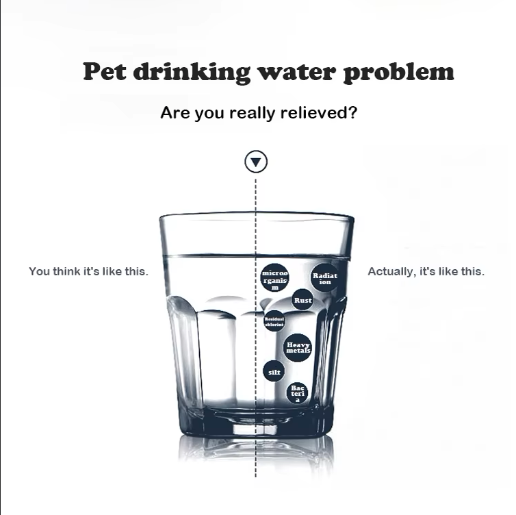 Do you think your pet's drinking water is pure and clean? The truth might surprise you. As shown in the picture, what seems like clear water can actually hide various contaminants—microorganisms, rust, heavy metals, silt, and more. Our Smart Pet Water Dispenser is here to tackle these hidden threats.