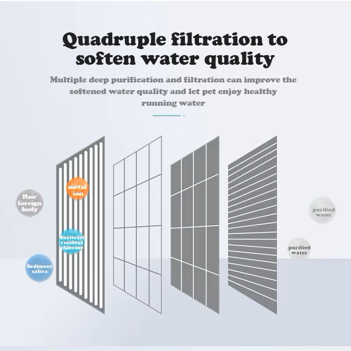 Our dispenser features a powerful multi - layer filtration system. It effectively removes impurities such as rust, silt, and heavy metals, while also eliminating harmful microorganisms and bacteria. Just like a guardian for your pet's water source, it ensures that every drop of water your pet drinks is as clean and pure as it appears—free from the hidden dangers you can't see with the naked eye.