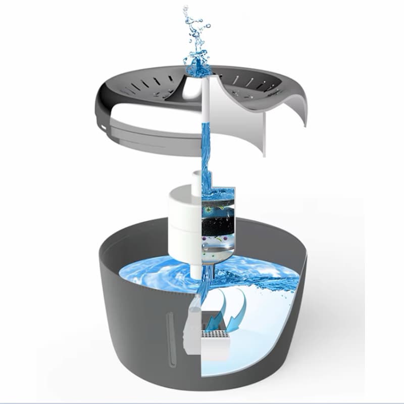 The water continuously circulates through a multi - layer filtration system, ensuring that every drop remains fresh, clean, and free from impurities. With each cycle, the water is purified, maintaining optimal hygiene standards and providing your pet with the healthiest drinking experience possible.