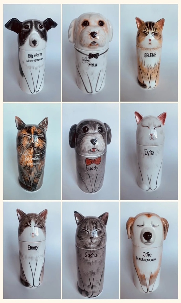 Introducing our exquisite ceramic dog-shaped cremation urn, crafted with the finest materials to honor the memory of your beloved pet. This elegantly designed urn serves as a timeless tribute, meticulously shaped to resemble a loyal companion, symbolizing everlasting love and companionship. Embodying both sophistication and grace, this urn is the perfect vessel to preserve the treasured memories of your furry friend. Honor their legacy with this stunning piece, a symbol of enduring devotion and remembrance.