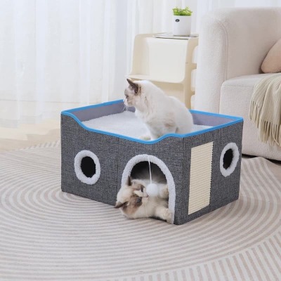 One item can meet the five major needs of cats: sleeping, playing, climbing, scratching, and hiding! It can be folded and stored in 3 seconds. The premium lamb wool is skin-friendly in all seasons, giving your furry child a private castle that can breathe.