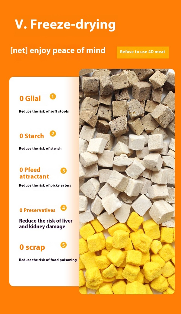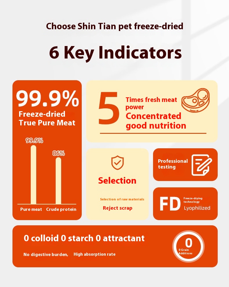 Vacuum freeze-drying technology, five times the concentration of nutrients, concentrating the essence without destroying the inherent nutrients of the meat