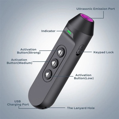 Ultrasonic Technology: Emits ultrasonic waves (inaudible to humans) up to a 5-meter range, ideal for redirecting attention or discouraging unwanted behavior.